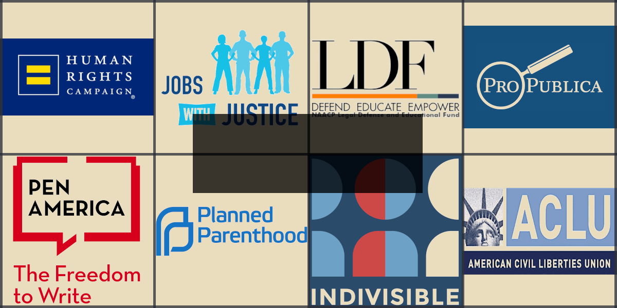 We donate roughly 20% of profits (5% of each sale) to an activist group of your choice at checkout.